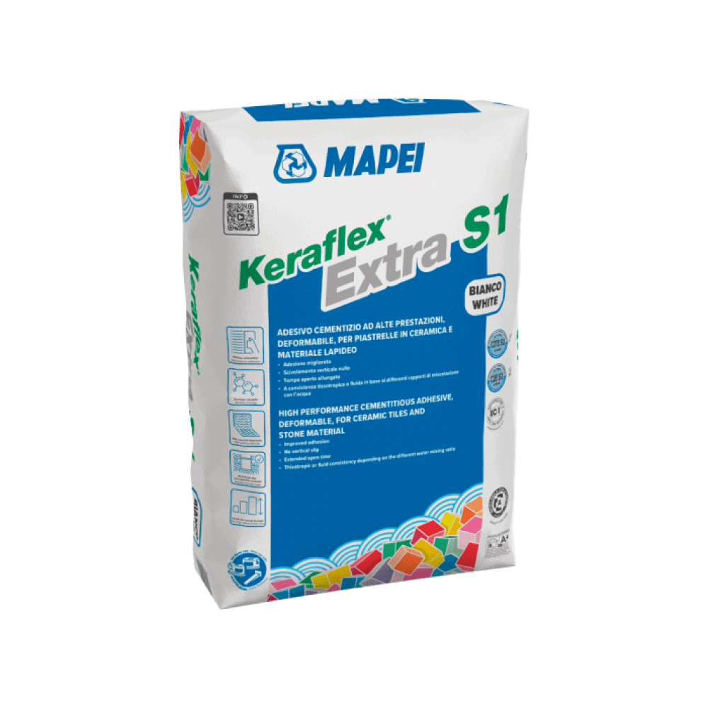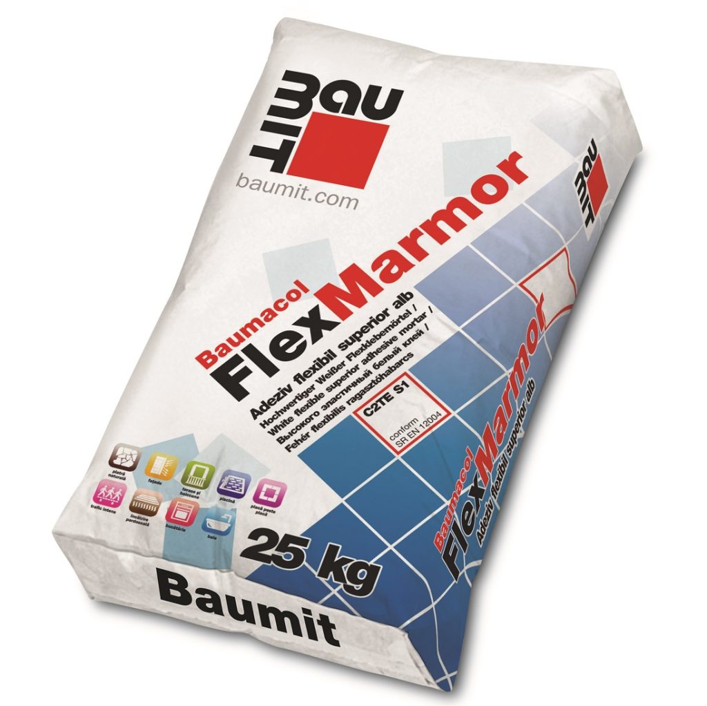- S1: Adeziv flexibil cu deformare ≥2,5 mm. Recomandat pentru suprafețe predispuse la mișcare (de exemplu, încălzire prin pardoseală).